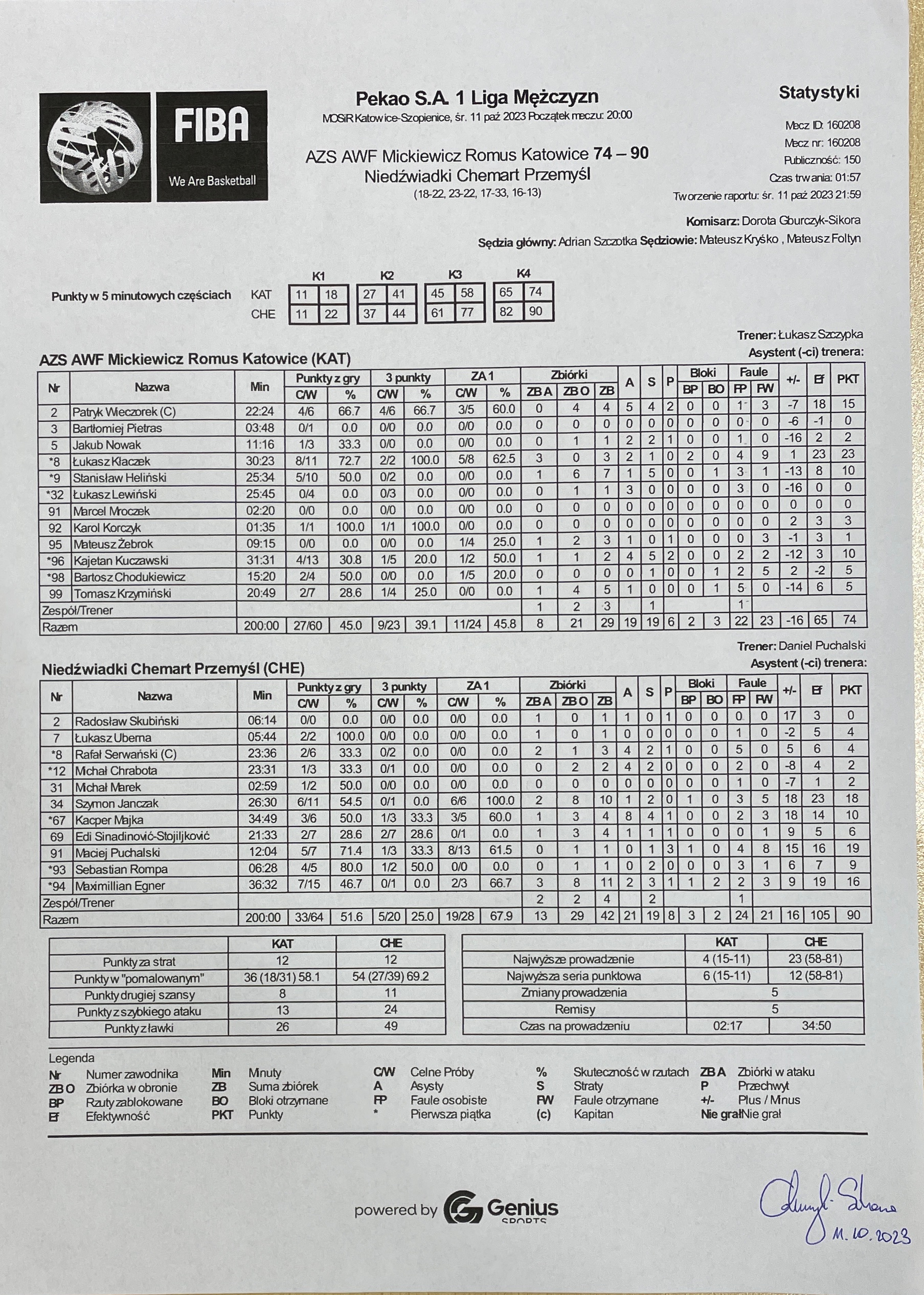 Sędziowie: Adrian Szczotka, Mateusz Kryśko, Mateusz Foltyn | Komisarz: Dorota Gburczyk-Sikora