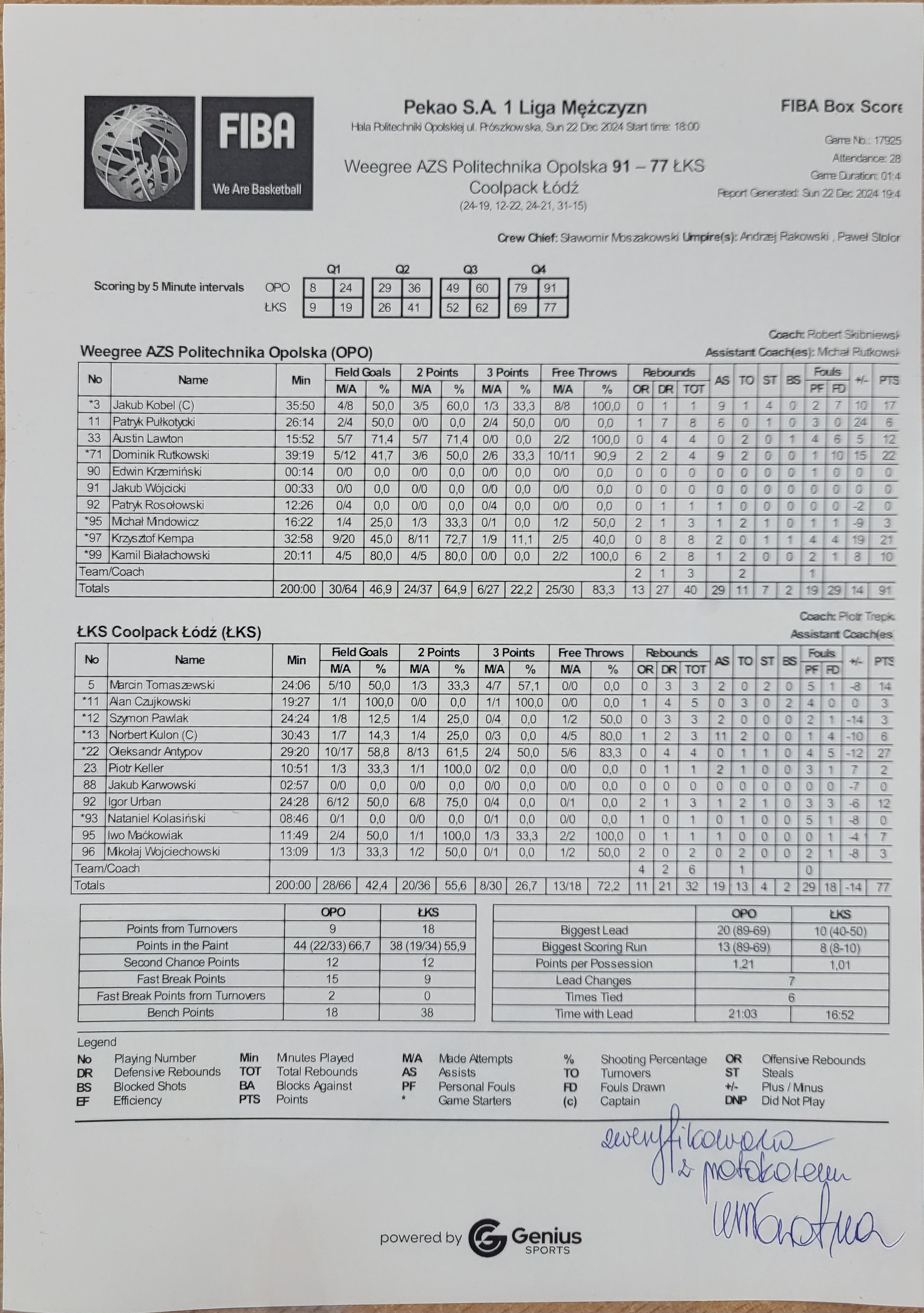 | 12 | Szymon Pawlak | 3 | 24:24 | 1/4 | 25.0 | 0/4 | 0.0 | 1/8 | 12.5 | 1/2 | 50.0 |   | 3 | 3 | 2 | 2 | 1 |   |   |   |   | 0 | -14 | |