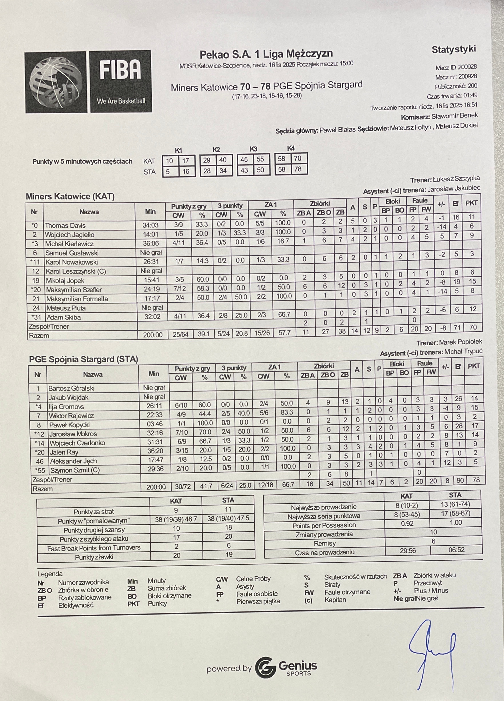 Sędziowie: Paweł Białas, Mateusz Foltyn, Mateusz Dukiel | Komisarz: Sławomir Benek