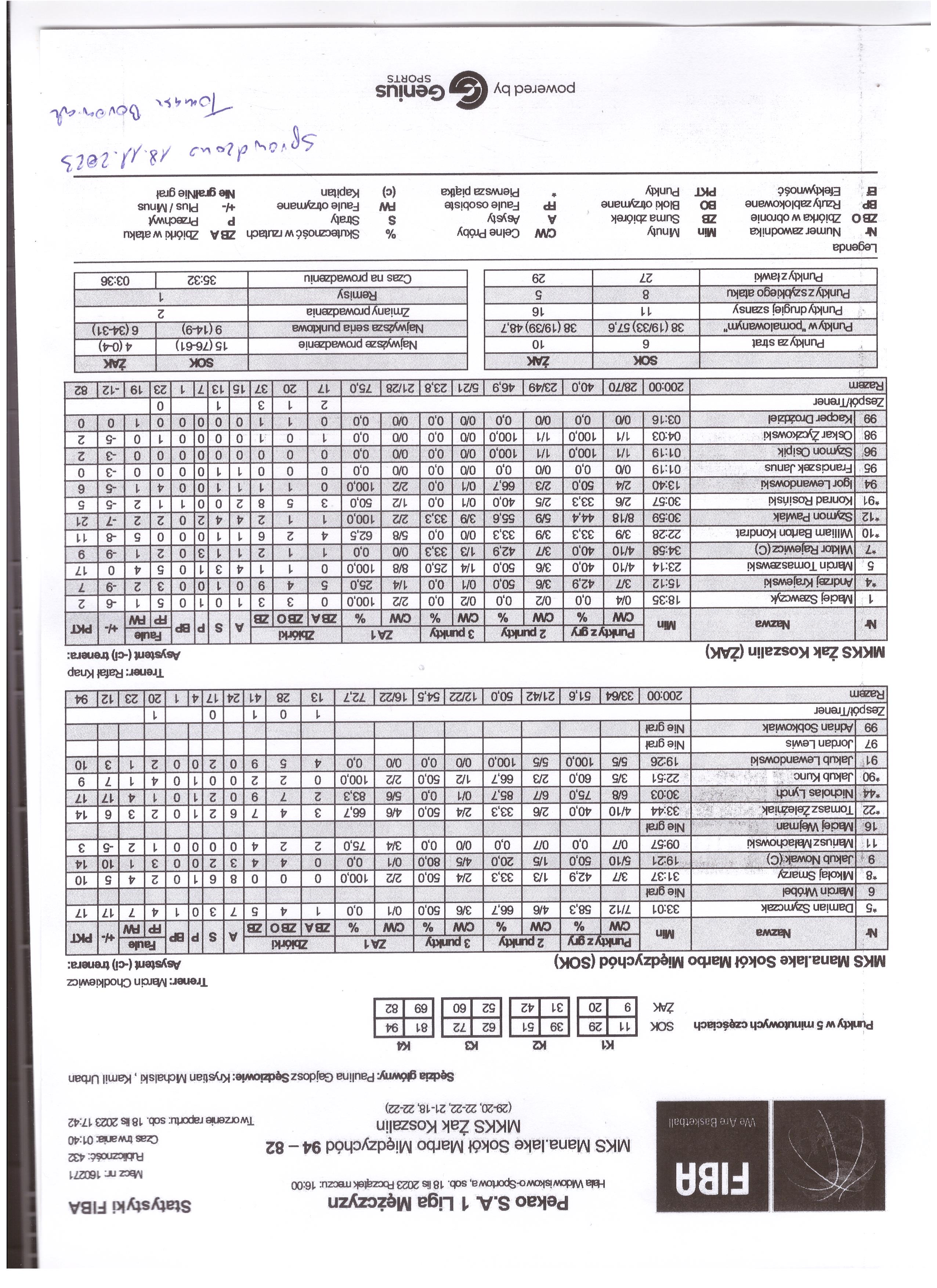 22 Tomasz Żeleźniak 14 33:442/6 33.32/4 50.04/10 40.04/6 66.73 4 7 6 2 3 2 1     18 6